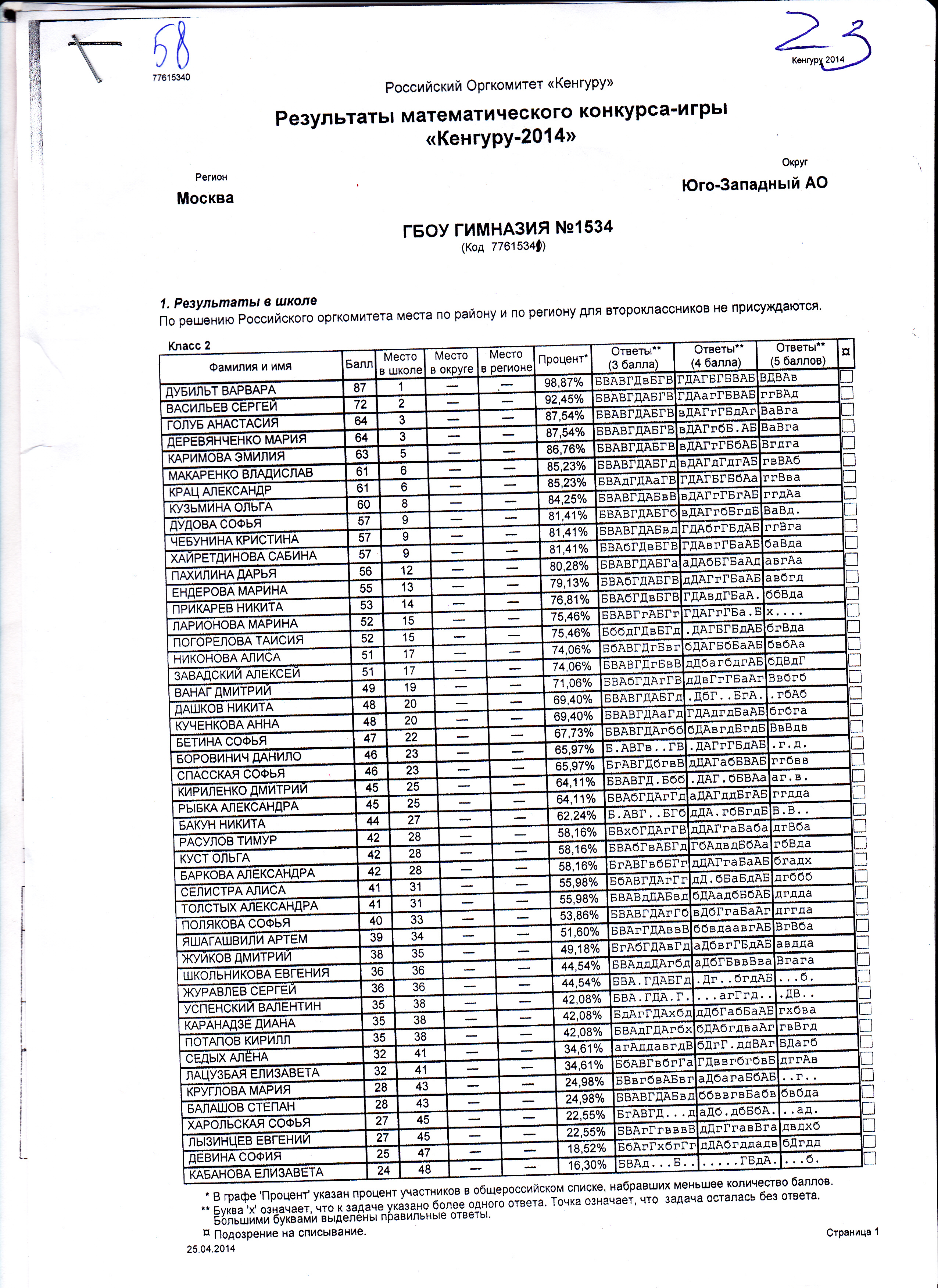 Результаты Вашего ребёнка и других ребят нашей параллели Вы можете посмотреть в приложенном файле.