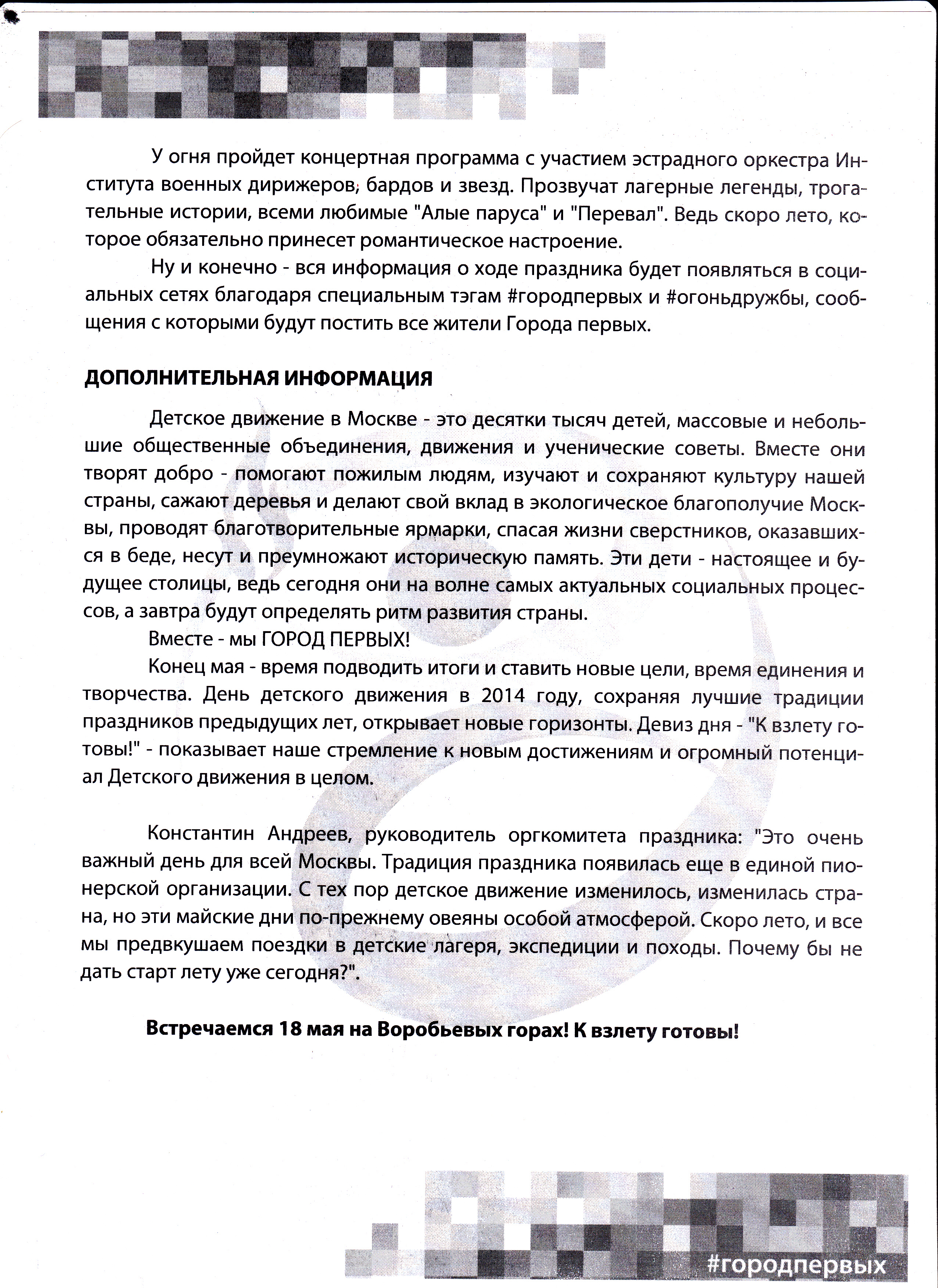 Внимание! Завтра мероприятие от Детского движения Москвы. Прийти можно всем желающим (не только тем, кто участвовал в акциях). Подробная информация во вложениях.